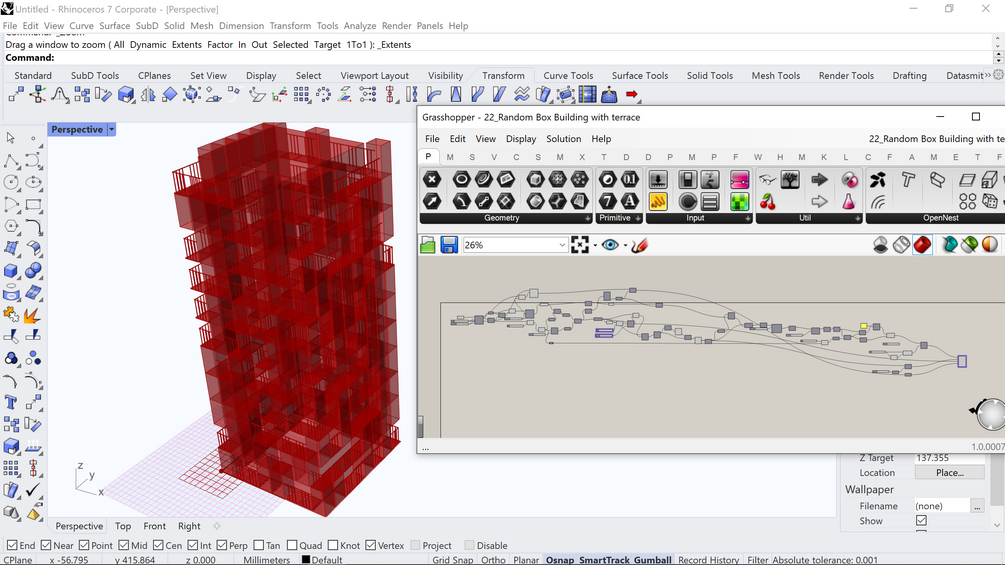 Random Box Building with terrace [Grasshopper & Rhino3D]
